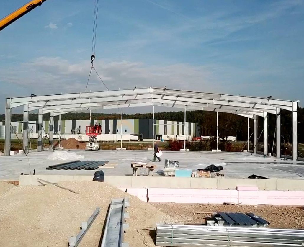 In den letzten Tagen ging es wieder zur Sache auf unserem Bauplatz in Höchstadt. Wie auf dem untenstehenden Kurzviedo zu sehen ist, steht bereits das Gerüst für die neue Ausstellungshalle. Darin finden später ca. 20 Reisemobile Platz um bestaunt zu werden.