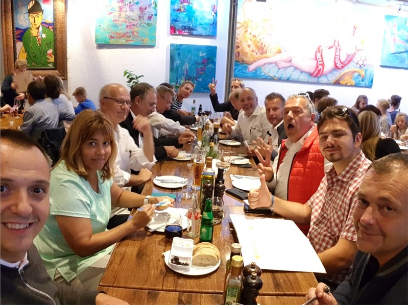 Auch für uns war die Messe bislang ein voller Erfolg. Nach einem anstrengendem Messetag feierten wir bei einem gemütlichem Abendessen, dass wir bereits 45 Fahrzeuge verkaufen konnten und blicken somit zuversichtlich auf die letzte Hälfte der diesjährigen Messe. Wir freuen uns, dass unsere neue Reisemobilmarke ,,Dethleffs“ von den Besuchern gut angenommen wird und wir auch hier bereits erste Erfolge vermerken können.
