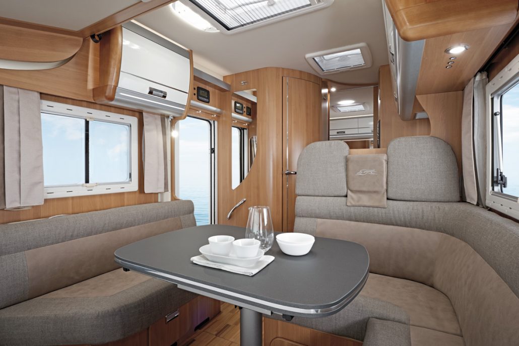 Warmer Beigeton mit hellerem Innenteil komplettiert die Holzdekors in unseren Pössls für warmes Ambiente.