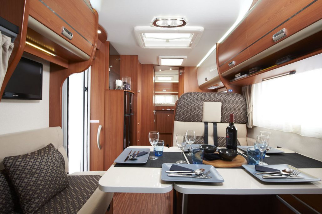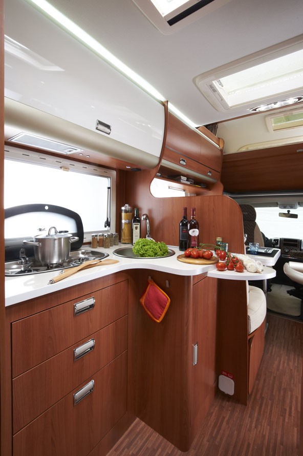 Warmer Beigeton mit hellerem Innenteil komplettiert die Holzdekors in unseren Pössls für warmes Ambiente.