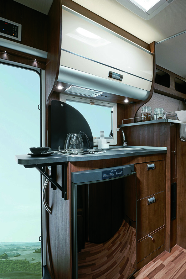 Warmer Beigeton mit hellerem Innenteil komplettiert die Holzdekors in unseren Pössls für warmes Ambiente.