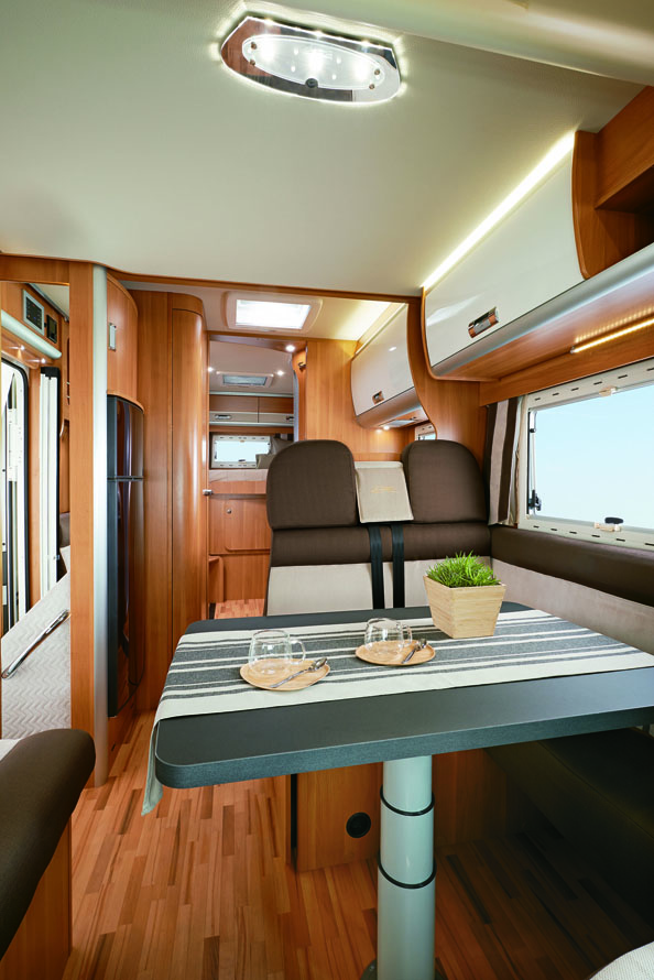 Warmer Beigeton mit hellerem Innenteil komplettiert die Holzdekors in unseren Pössls für warmes Ambiente.