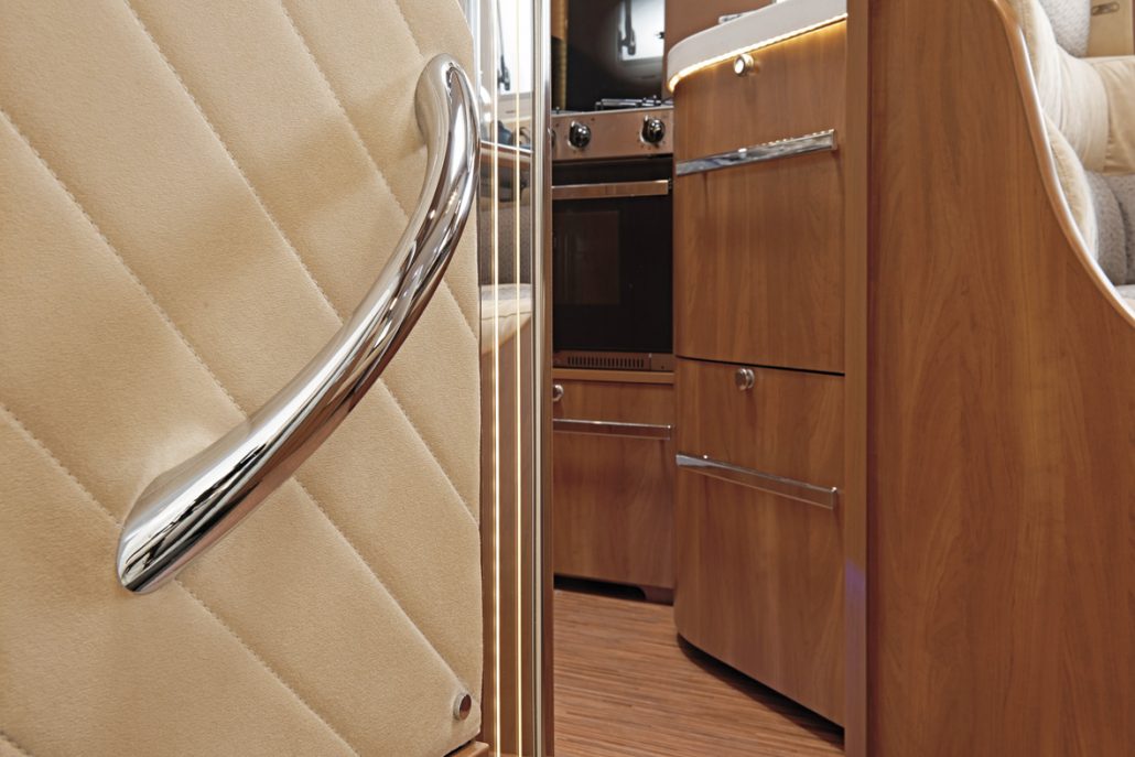 Warmer Beigeton mit hellerem Innenteil komplettiert die Holzdekors in unseren Pössls für warmes Ambiente.