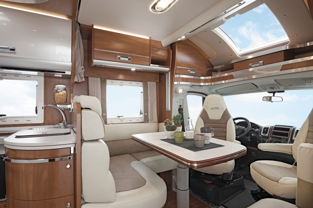 Warmer Beigeton mit hellerem Innenteil komplettiert die Holzdekors in unseren Pössls für warmes Ambiente.