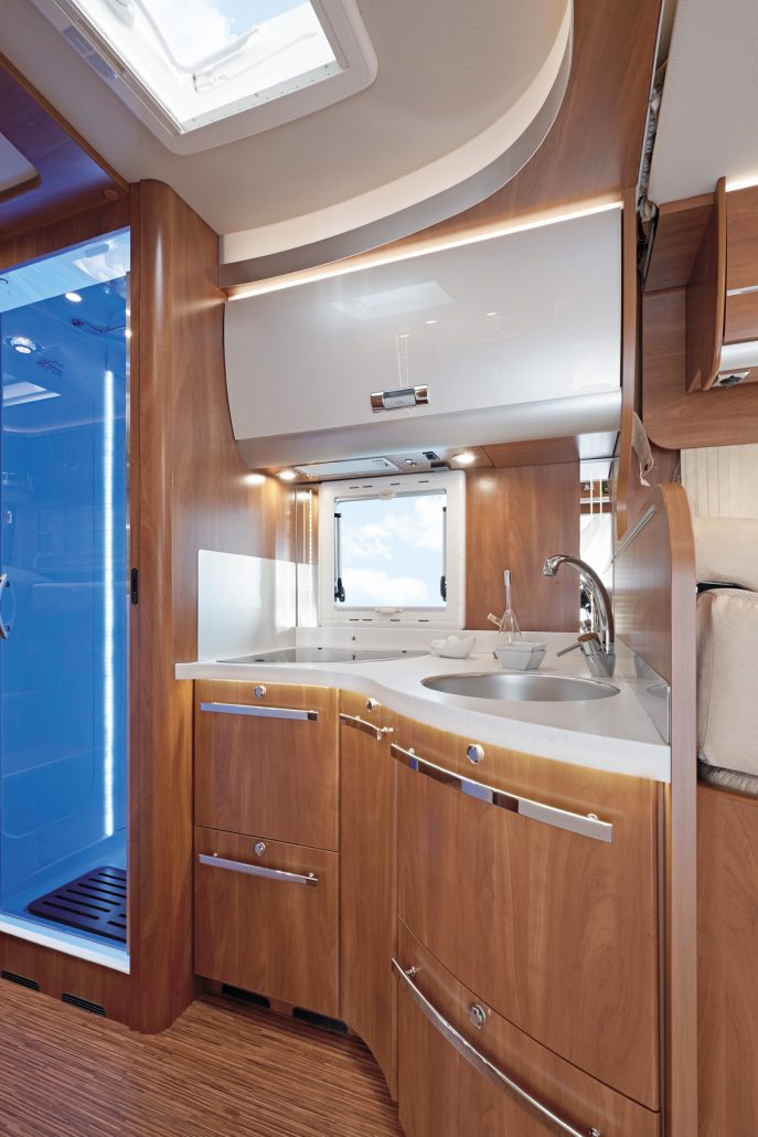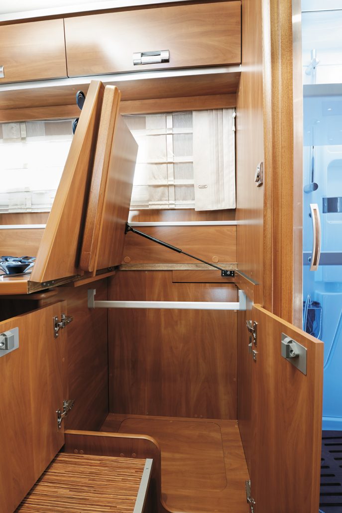 Warmer Beigeton mit hellerem Innenteil komplettiert die Holzdekors in unseren Pössls für warmes Ambiente.