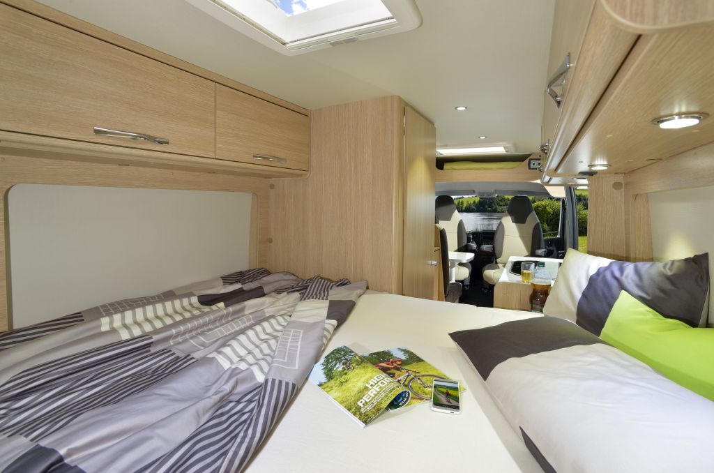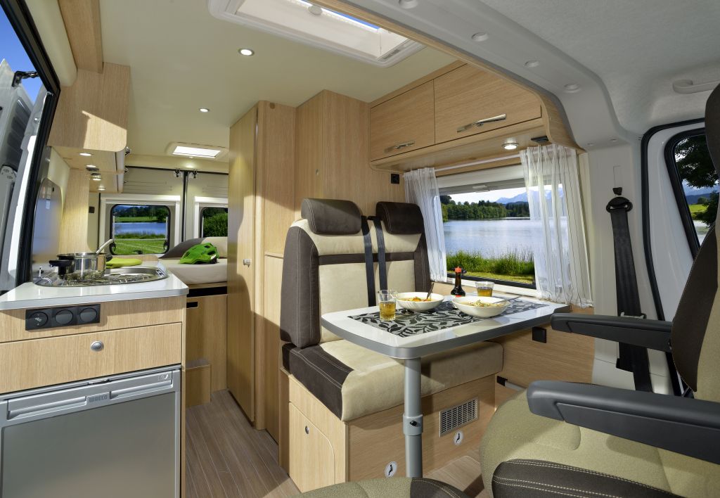 große Arbeitsfläche in der Küche, gemütliche Sitzgruppe und dazu große Schränke für sämtliche Utensilien. Dazu bietet das Doppelbett noch mal mehr Platz – für extragroße Träume!